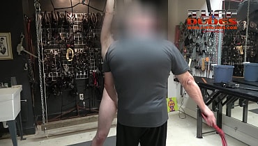 Tuffdude Boreas claims that he is a serious pain pig and offers himself to his Extremetop to do whatever he wants so that he can prove himself. Sir is delighted to see his boy’s dedication – and determination. Sir spreadeagles his cute pain pig for his ordeal and just to add a bit of motivation he affixes one of his track shoes onto the boy’s face covering his mouth and nose. Sirs’ odors will remind the noy why his is doing this. Master uses a stiff brush to tenderize the boy’s body including his ass crack, cock and balls. Then he uses the heavy red scrouge and mean cat-o-9-tails on his flesh and zaps the hell of him with his powerful shock wand. Slowly the boy is lifted up off the floor which puts him over the top as he swings by his wrist. Sir takes the boy down having done such a fantastic feat of endurance. Next stop – Master’s Scotch & Cigar room to pleasure his Sir’s cock.