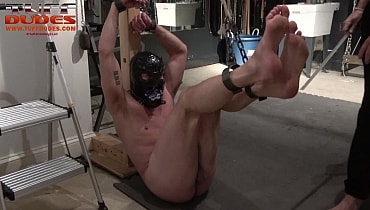 Tuffdude CodyTx’s stunning body was too much for Extremetop to leave alone for any extended period during the boy’s visit. So, he dipped into his creativity and decided maybe some bastinado and some other focused abuse if his torso would be both fun and a challenge for this Texas boy. So, he shackled the boy up to the upright portion of the Roman cross and begins to attack the soles of the boy’s feet with sticks and rods. It doesn’t take long for our hot Texan to do a new squiggly version of the Texas Two-step. Sir Extremetop then gets the boy to his feet and ties him to the cross. He used several straps to bind the boy tight. The he begins to scrape the stud all over the skin of his torso, ball, sac and cock with a variety of brushes, including a circular one that Extremetop shoves the boy’s cock through the center. Next Sir teases the boy with a few zaps of the zapper and then digging in clothes pins all over the boy’s body from his collarbone to his chest, all the way down to balls and thighs. The boy said it’s the kind of scene he doesn’t get very often and appreciated Sir’s creativity.