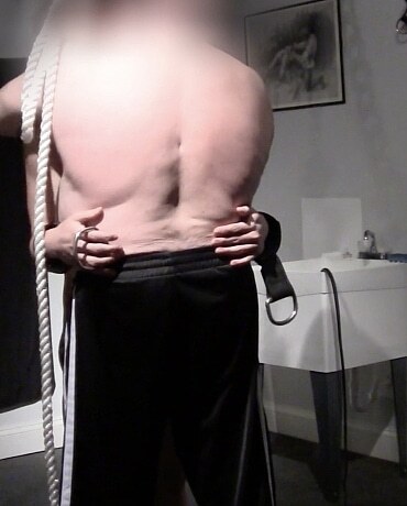 Tuffdude Condecon offers his Dom a little afternoon entertainment when he proposes a challenge game. He is hooded and strung up high to the dungeon ceiling and proposes that Sir whip him with the black snake single-tail until he asks for relief. That relief from Sir’s whip comes when he asks Sir to hang him. After some prep play with a pinwheel and a stiff brush, Sir places a noose on the boy’s neck. The boy takes quite a whipping until finally he asks to be hung instead, which of course Sir is more than happy to oblige. Sir grabs the loose and of the noose rope and pulls with all his might. Seeing the boy stretched to the tip of his toes is amazing. When Sir releases the rope, the second round begins until Sir cums. What a great afternoon!!