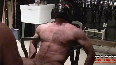 JosephOx is a beast, and he shows it off again in this electro submission video. The Ox gets fully strapped down to this bottomless chair, making him flex and expose his delicious abs and chest. His cock is wired up good for a long and brutal elecro scene. Masked and gagged, Joseph struggles as Extremetop dials up the pain, bringing out a flogger for some added fun while the sub squirms and moans in pain... or is it pleasure?