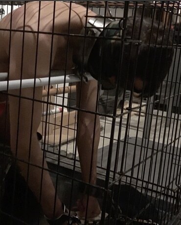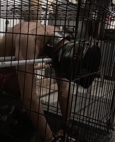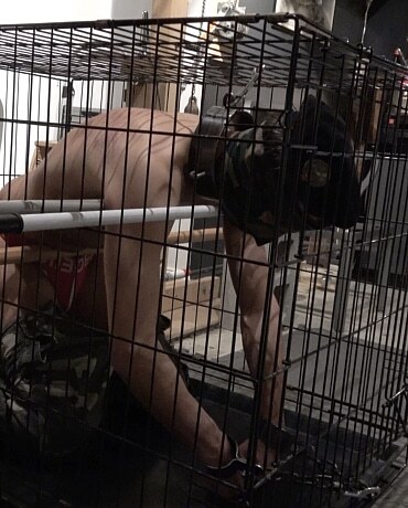 Tuffdude and Slave to Extremetop, Kuri is locked in his Master’s cage to be tormented with nowhere to go. His Master immobilizes him by running long dowel poles across the cage so that the slave is stuck in his kneeling position, ass VERY exposed. Then Sir whacks the slave with a long stick and pokes him all over including his ass hole. Soon Sir attaches a long thick dildo to that stick, and rams it into that slave ass. The slave is commanded to ride that dildo and fuck himself with it. Master then drips hot candle wax onto the slave’s body and uses his zapper to shock the slave till he asks for mercy.