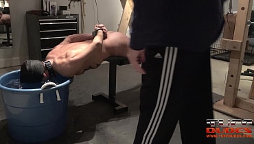 Extremetop’s long-time slave from Switzerland dares his Master to torture him till he taps out. His Master is up for the challenge and straps the slave to a bench face-down but pulled forward so that his entire torso from the groin up is hanging over the bench’s edge. Then much to the slave’s surprise, Master pulls over a deep tub of cold water right under the slave’s head. So begins round one with Master having a great time dunking the slave into the tub for longer an loner periods of time. Guess what? After about 7 minutes of struggling to breathe, the slave holds up 2 fingers signaling that he gives up. But Master is having too much fun, so he flips the slave over and the water torture begins again but this time the slave of face up. He offers up the information after 6 minutes. It’s the way Tuffdudes enjoy themselves!