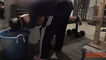 So hot! love that he desides to waterboard himself rather than taking the muskle pain. Always love cuffed slaves!