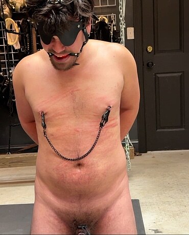 MarylandMasoBoy continues his journey into serving Extremetop in Master’s dungeon. Master wires up his boy with conductive loops around his balls and cock and attached it to a Estim device. Slowly Master increases the voltage causing to boy to go deeper and deeper into pain. His groans are sexy as hell which only serve to turn on Master even more. He adds so clover tit clamps just to make it interesting. As the boy approaches half the capacity of the electro unit, Master gives the boy an out by letting him beg for mercy. The boy reached level 49 out of 99 and cries “Mercy Sir.” And so, Sir stops the pain and embraces his boy. Scene 3 comes next.