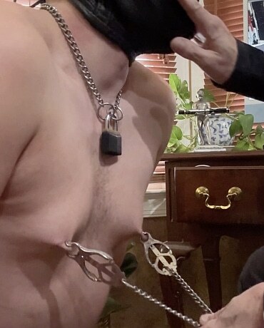 Master was kind of tired and so rather than take his boy down to the dungeon for a long intense scene, he decided to sit in his office and watch one of the amazing videos on Tuffdudes.com. Just for fun, the video Sir selected was of MarylandMasoBoy being electro tortured in the dungeon chair. Master brings the boy into his office as he’s enjoying the video and decides to use him right then and there. He adds clover clamps on the boy’s tits, a gets a huge thick blue paddle to pound his ass cheeks. He then gets a bamboo back scratcher to be used as a cane. He then takes possession of the boy’s mouth and pushes he head onto his cock. The boy sucks his Master’s cock with gusto until soon Master cums! What a perfect afternoon: watching a great Tuffdudes video and getting pleasured by one of your hot boys.