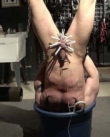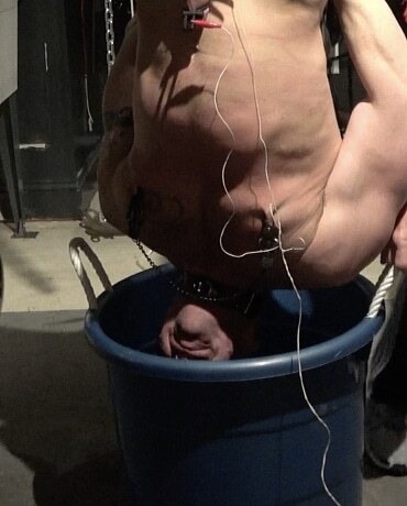 Tuffdude and Extremetop’s muscle boy MLDSLC shows up for a long weekend to serve and entertain his Sir. In one of the several sessions that weekend, Sir hoists the hunk up by his ankles, for some extended and very serious pain play. In Part 2, Sir ties the boys’ wrists behind his back and takes the red scourge to the boy. Slash after slash rips into the muscular frame. The Master adds clamps to the boy’s tits, and pegs onto his cock and ball sac. He slides a deep tub full of cold water under his head and proceeds to lower the boy into the water headfirst. Over and over, Sir dunks the boy into the water with each plunge getting longer and longer so that the boy gasps for air when his head emerges. As the scene ends, sir removes the pegs on the boy’s balls and attaches electrodes from the crank magneto. Shocks rip through those muscles as the current shocks the boy’s meat. MLDSLC is so magnificent!