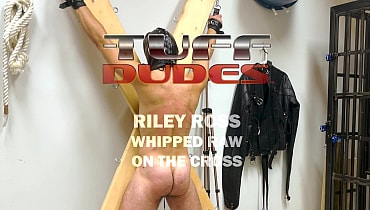 Today in the dungeon, Extremetop pushes Riley Ross to the limit on the St. Andrew's Cross. Facing the wall with nowhere to go, Riley pushes his ass out for Extremetop to warm up on with the flogger. Riley yelps from round after round of lashes over his exposed back and juicy ass leaving them red and hot. Extremetop ups the heat, going between scourges as his sub flails and hollers for more. When the boy's back has had enough, Extremetop turns Riley around for a workover of his front side. You have to even things out, right? Extremetop grabs Riley's nuts for a good few twists and pulls before opening back up with the scourges as Riley professes his love of suffering for his Sir.