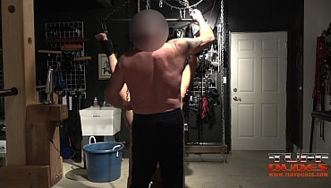 Subimpactee is hung upside down in wait, as his Master begins to hoist him up for a long and unrelenting whipping. The slave's sensitive balls and cock hang over his belly, as Extremetop begins cracking in with the flogger to warm him up. Subimpactee moans out as he enjoys lash after lash from his Master's leather. As a reward from being such a good pain pig, Master Extremetop pulls out his braided rope whip. After a few whacks from that mean crop Subimpactee yelps with excitement proclaiming loud and proud that he loves to suffer for his Master.