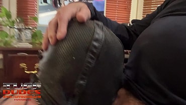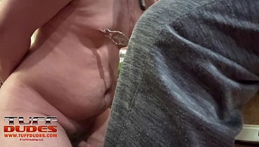 Master was kind of tired and so rather than take his boy down to the dungeon for a long intense scene, he decided to sit in his office and watch one of the amazing videos on Tuffdudes.com. Just for fun, the video Sir selected was of MarylandMasoBoy being electro tortured in the dungeon chair. Master brings the boy into his office as he’s enjoying the video and decides to use him right then and there. He adds clover clamps on the boy’s tits, a gets a huge thick blue paddle to pound his ass cheeks. He then gets a bamboo back scratcher to be used as a cane. He then takes possession of the boy’s mouth and pushes he head onto his cock. The boy sucks his Master’s cock with gusto until soon Master cums! What a perfect afternoon: watching a great Tuffdudes video and getting pleasured by one of your hot boys.