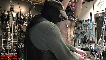 Riley continues to hang around with a sound fixed to his cock while extremetop loads up his nipples with some serious weight. Extremetop breaks out the stiff rubber flog and goes in on Riley's torso, and finishes up with some intense nipple torture including clothespins and the riding crop.